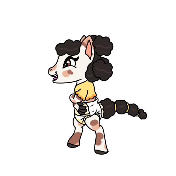 Hannah Graymane: Child and sister of Hilda. Age 0 (5 months). A newborn foal still discovering the world, shy and nervous around older people. She looks up to Hilda for guidance, and tends to relax more with her around. She's friends with Cindy and Leyenda, as both are just as little, (if not younger,) than she is. She does, however, enjoy some of the older kids' company, such as Clarise, who regularly stands up for her when she's bullied, or Alice, who awes her with her tarot reading, (regardless of the cards she uses.) She's never without her pacifier, and will almost always have it in her mouth, and while Hilda has been teaching Hannah how to do magic like she can, she's still too little to channel that energy.