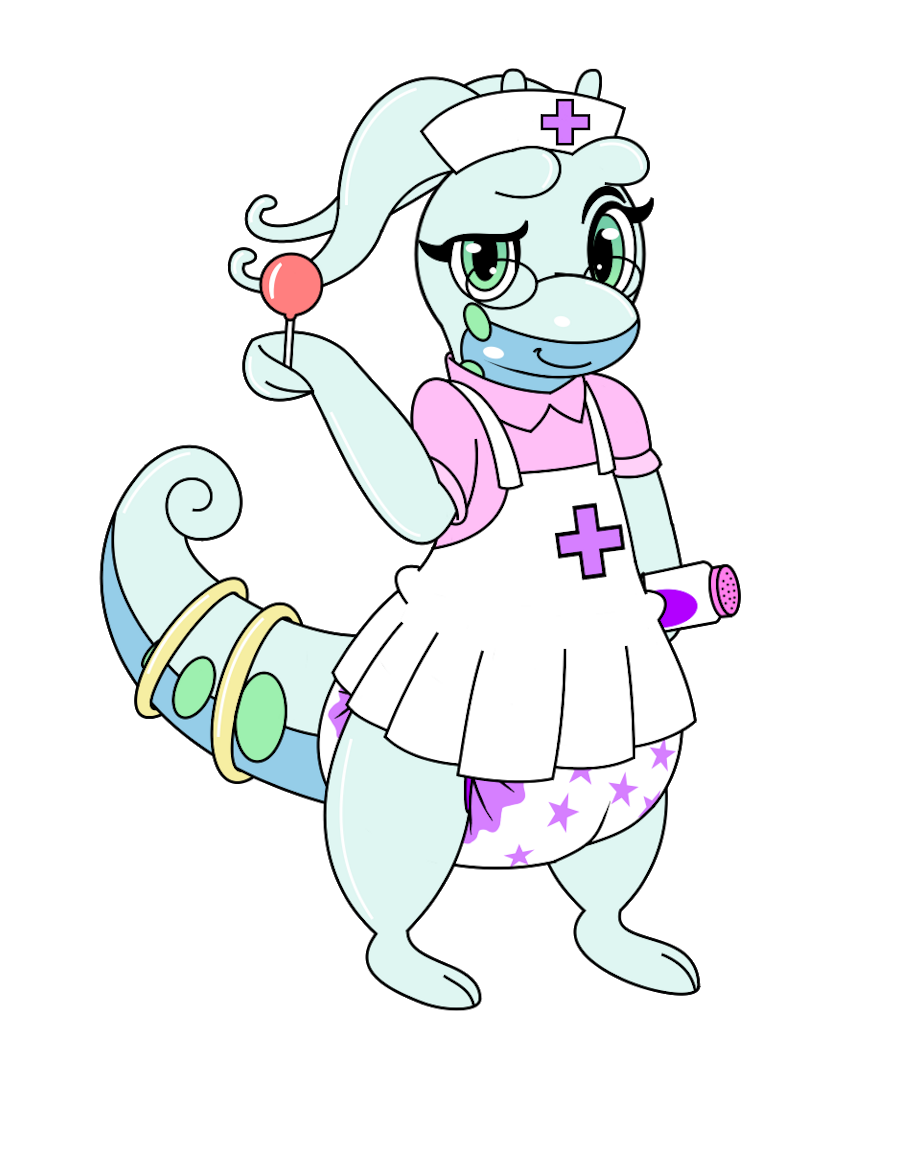 Othtuc Sabor: Nurse. Age unknown. A non-binary Goodra that cares for both the staff and the children. The diaper they wear isn't for necessity, but rather is meant to show solidarity to those who do need them. Anything from diaper changes to first aid, they're the one people turn to.