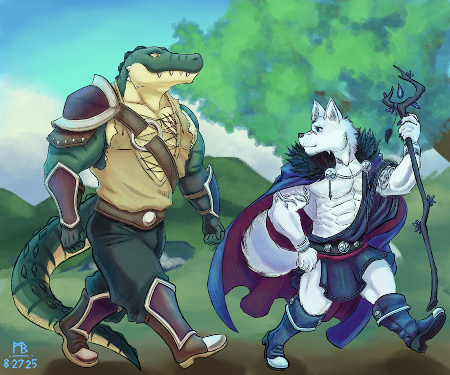 Heehehehehehehehehe, just a proper little drawing of BBJake and I's sonas lol. He's the gator, and I'm the husky :3