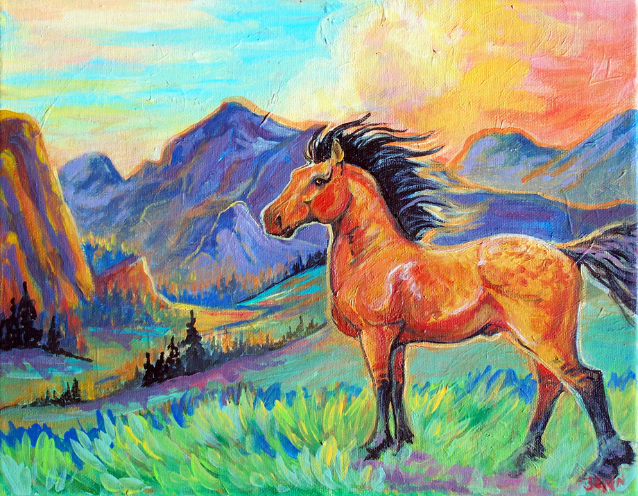 What a beautiful painting, so tranquil and majestic. It's so professional and gallery-worthy. Amazing work:) I love how you've used the colours to create depth, dimension, and texture. The proportions are spot on, and I love Spirit's wind-swept mane and tail along with his haunting and watchful gaze.