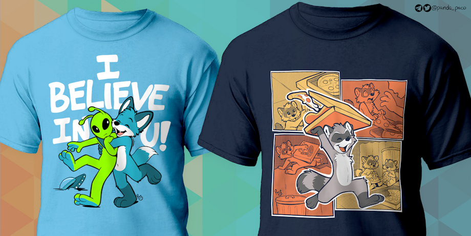 "I Believe in U" and "Chaotic Good" are the two new T-shirt designs that will be available at upcoming conventions, so far as I know: at Megaplex, BFC, BLFC, MFF and ANW. Available from S to 3XL.
