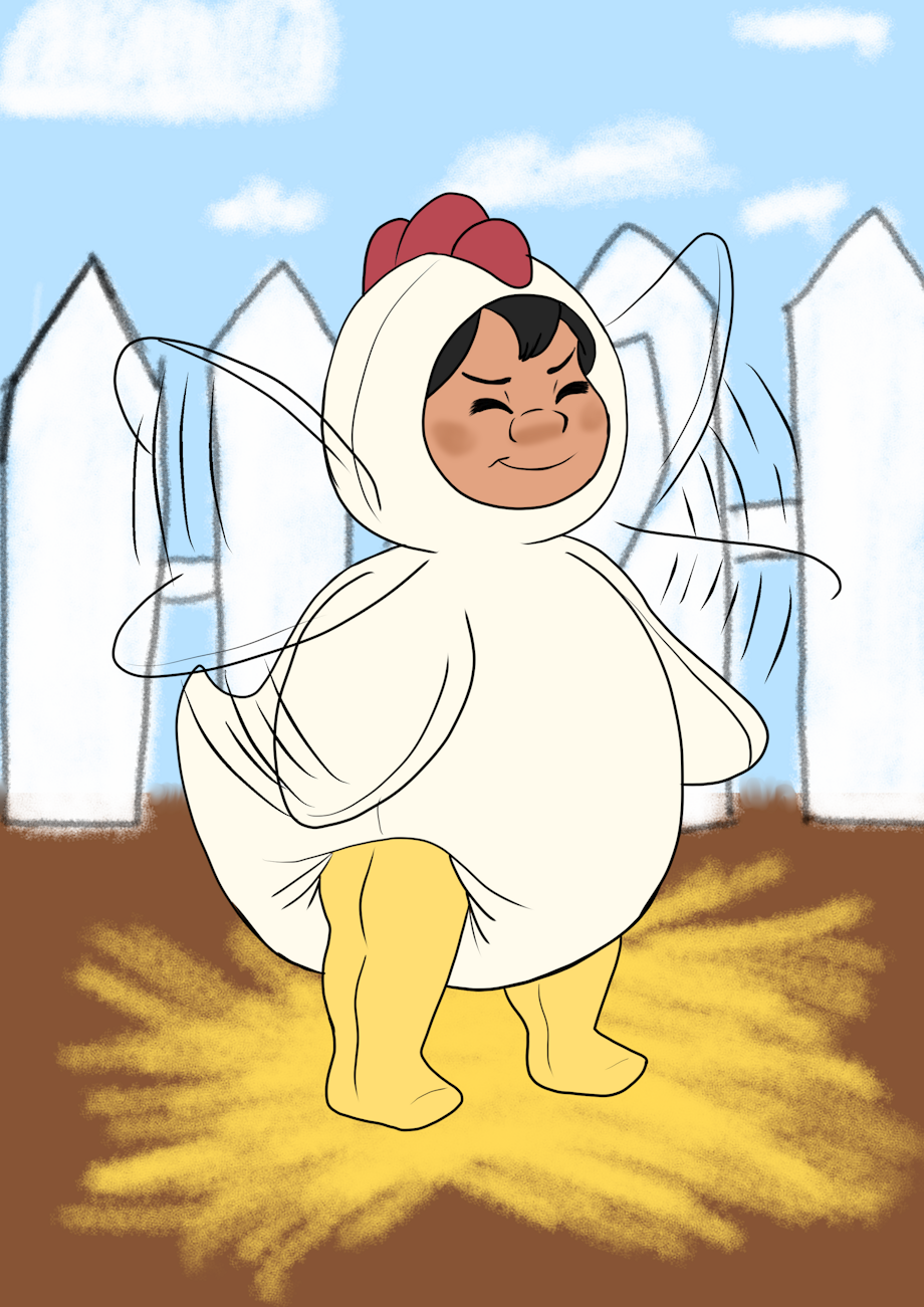 Seems Lilo got the part of a chicken in the school play. Good thing she's padded under that suit she isn't getting out without help.