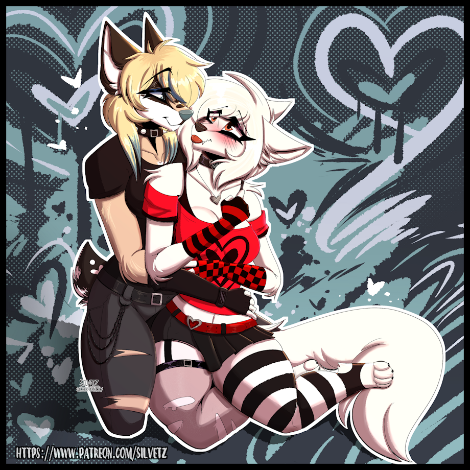 Its my birthday today and my partners birthday on the 5th next week so i drew a little thing of both our sonas!! :D