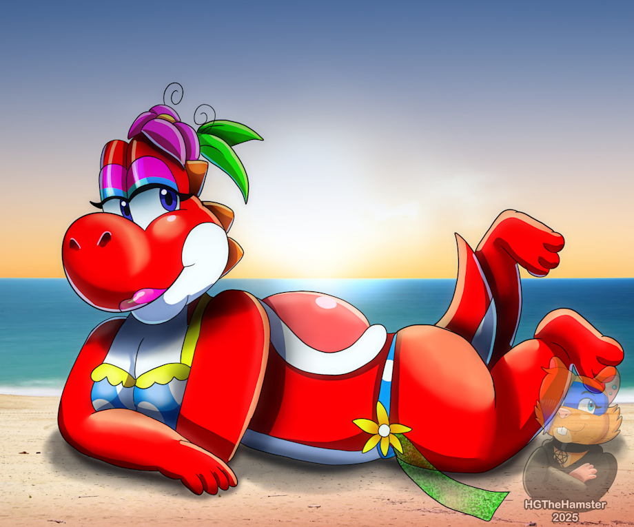 Done for https://www.furaffinity.net/user/bowserandlover1 of whatever this old drawing was I drew in like 2011 when I was first learning digital art lol https://www.deviantart.com/hg-the-hamster/art/rosa-198094351 If you haven't seen my recent journal/status update I'm basically offering to redraw some old gifts, art trades or commissions prior to 2018 and this one of the suggested drawings! I did make some slight changes to the new version like with the added bikini and flower as well removing the rock because I thought it wasn't needed unless I wanted to add extra detail. Loving the render on this though!