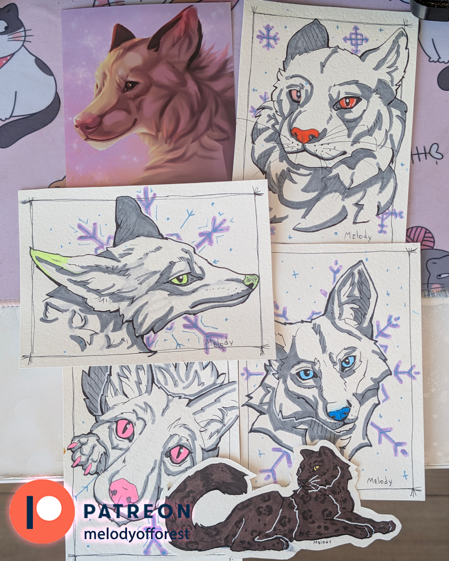 Postcards I drew for my supporters on Patreon and sent by letter.