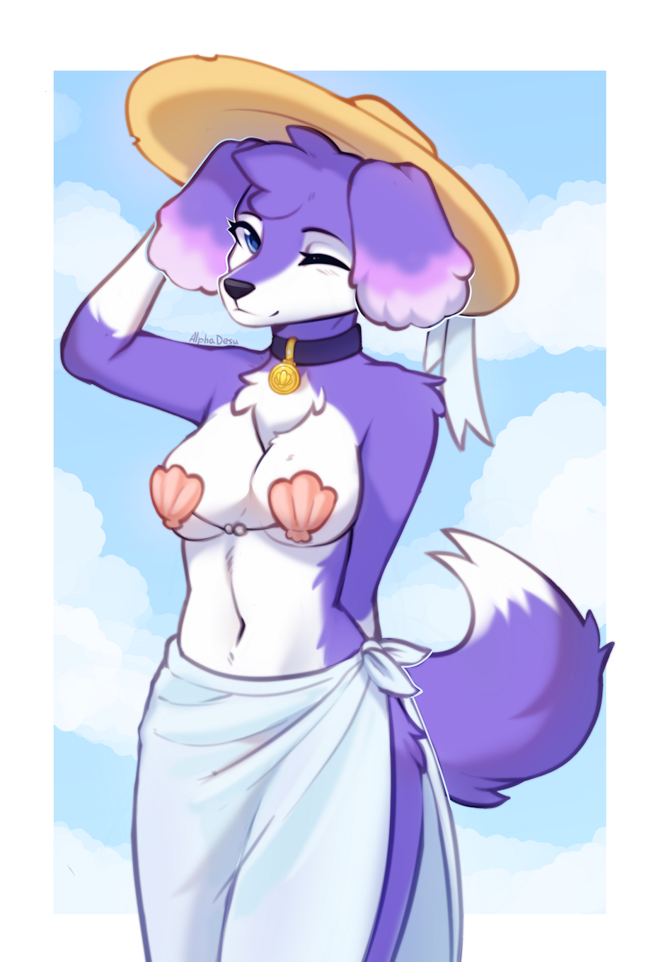 The 14th attack I’ve received is revenge friendly fire from AlphaDesu AlphaDesu who drawn anthro marina posing so beautiful in her one of many beachwear outfits she pulled out from her wardrobe that is a sea shell bikini, a big sunny hat to protect her from the sun and a white towel to dry herself off after a little splash in the sea as she’s enjoying the summer sun on the beaches of adventure bay.