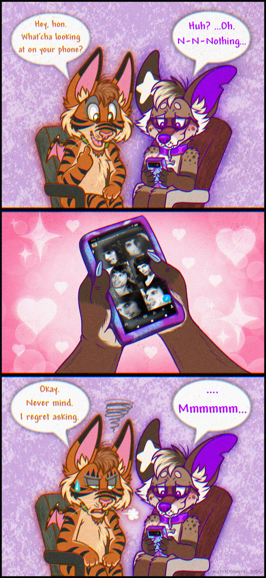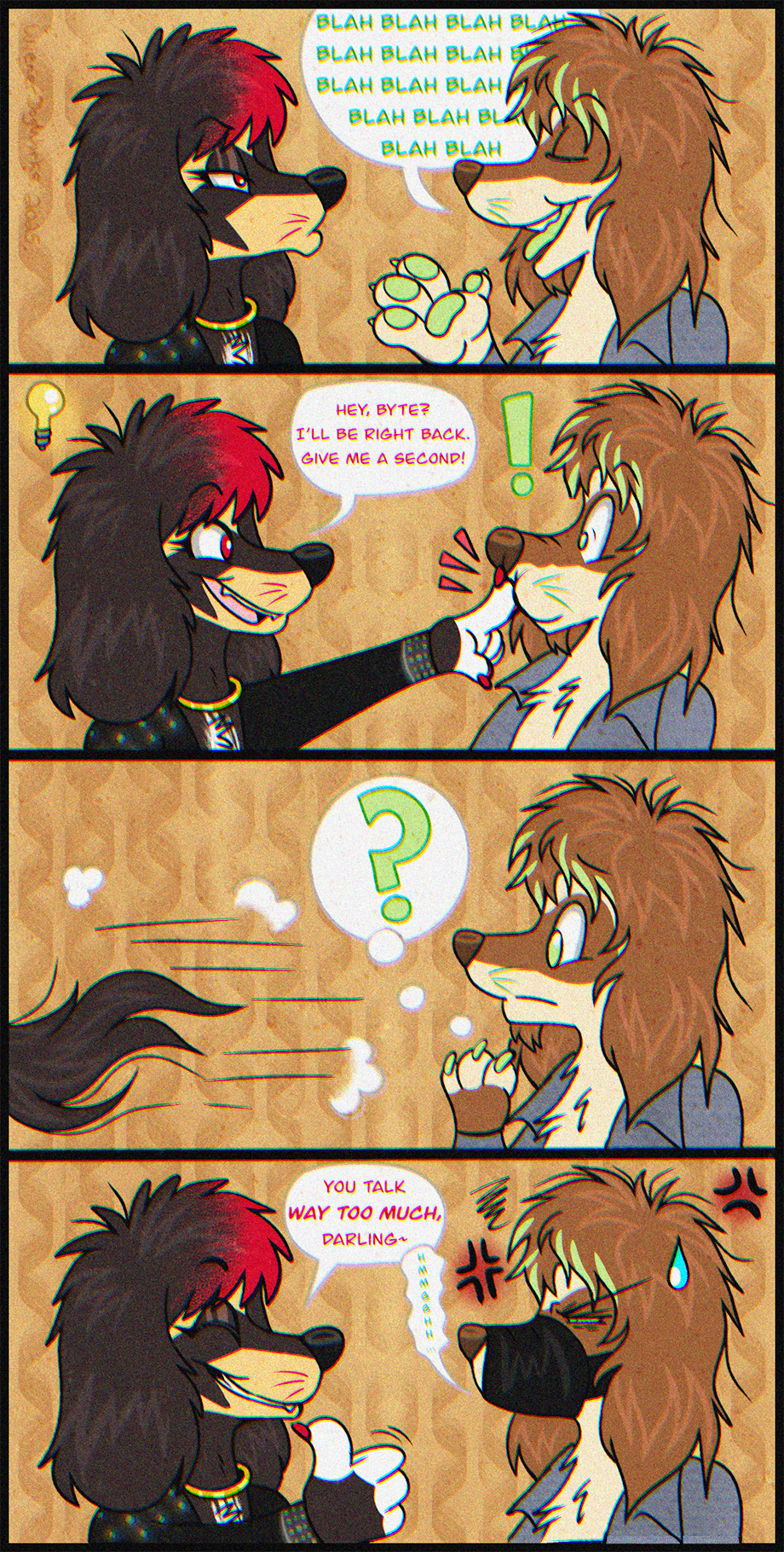 Quick silly comic I did featuring my fiancé and I's ferretdog fursonas!