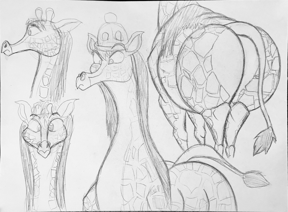 From the looks of the paper sketch, I wanted to give her a beanie to wear, but I decided to have her take it off at the last minute.