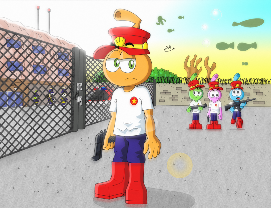 Corky at the police base, in a boring and hard day's work. Despite he being a workaholic, he has limits, can be tired and uncomfortable working too much.