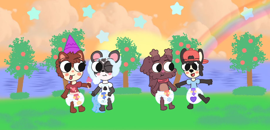 So here is my last drawing of August ^^ So Hedgehog, Pepper, Max and a Squirrel from Summer Camp Island are hanging out at the sunset while being padded, as well contemplating the beatiful views X3