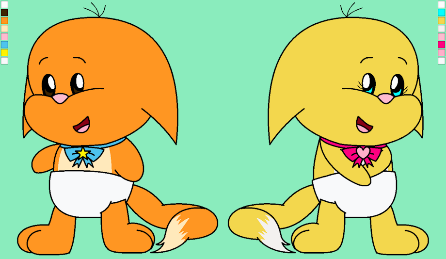 Reminds me of Lem and Ada from Strawberry Shortcake. They're British, citrus-scented toddlers, complete with oversized cloth diapers... the kind with cute oversized ties on the ends!