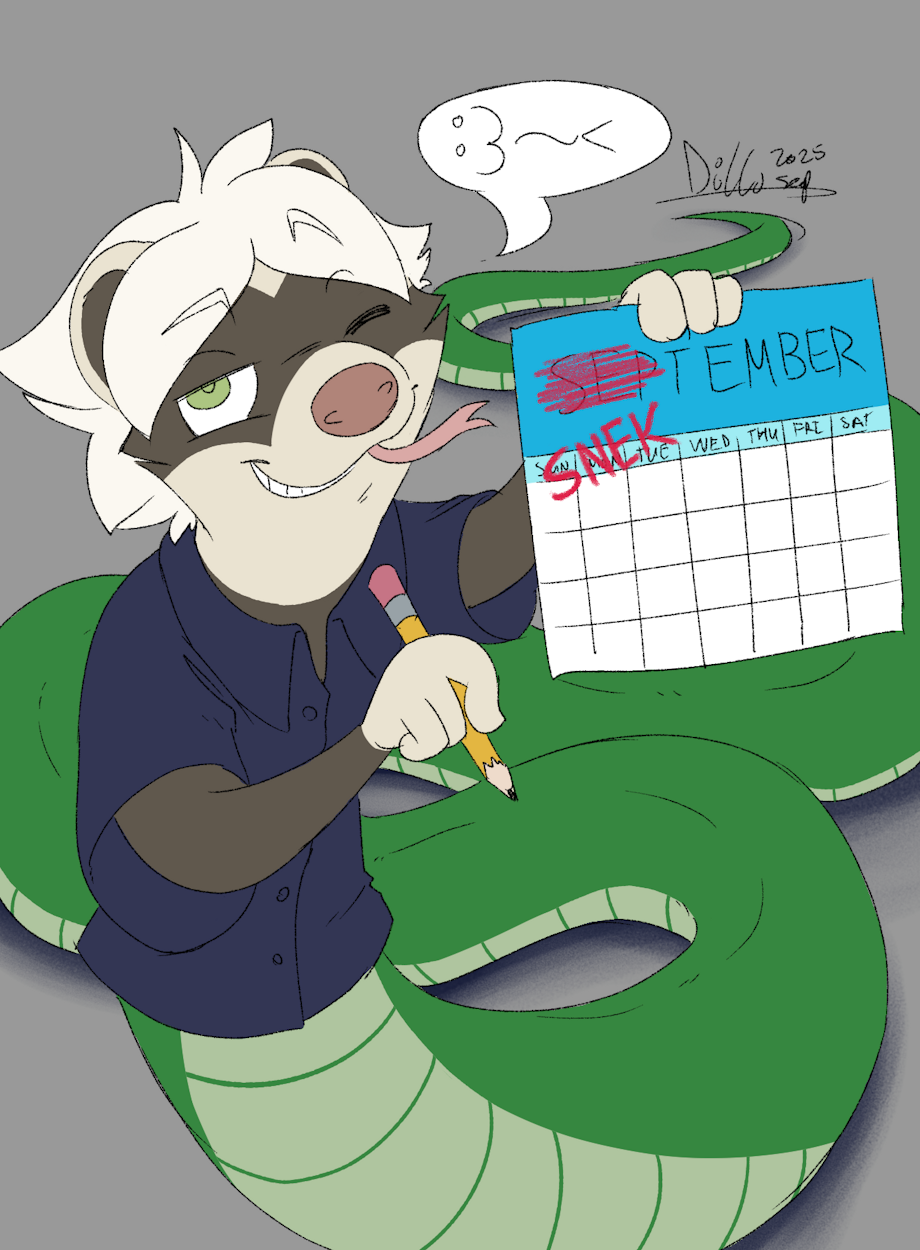 For some reason, I never did anything for Snektember. So here's a cheeky little thing for it, since Sydney's already a part-time snake.