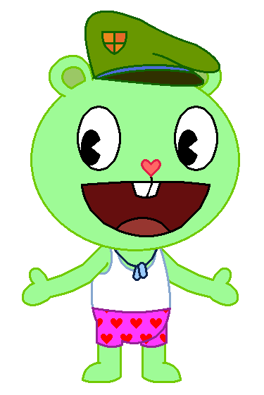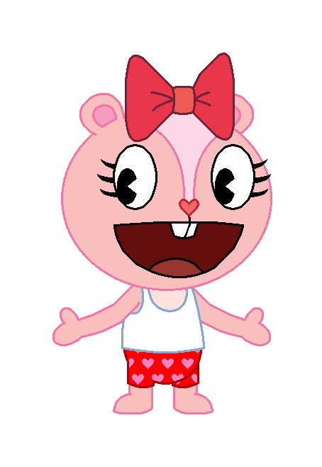 Here's something cute, adorable and funny I did. It's Toothy from HTF/Happy Tree Friends in underwear that males or females actually wear under their clothes. He is wearing Disco Bear's white sleeveless shirt/sleeveless top that is a tank top and tank shirt undershirt and A-shirt and vest and singlet from his workout and exercise and athletic and fitness and sports clothing/clothes in place of his best friend's white tank top from different Happy Tree Friends TV Series Episodes/Shorts along with Splendid's white undershorts and shorts and boxers underwear and underpants and undies with dark red and dark pink hearts on them from the episode: Gems the Breaks. Looks cute for a boy beaver to wear boxers and undershirt, doesn't it? And also, I forgot to tell you that the undershirt that he's wearing is from the episode: Ipso Fatso.