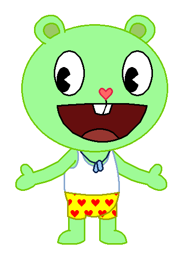 Here's something cute, adorable and funny I did. It's Flippy from HTF/Happy Tree Friends in underwear that males or females actually wear under their clothes. He is wearing Disco Bear's white sleeveless shirt/sleeveless top that is a tank top and tank shirt undershirt and A-shirt and vest and singlet from his workout and exercise and athletic and fitness and sports clothing/clothes in place of his best friend's white tank top from different Happy Tree Friends TV Series Episodes/Shorts along with Splendid's white undershorts and shorts and boxers underwear and underpants and undies with dark red and dark pink hearts on them from the episode: Gems the Breaks. Looks cute for a man bear to wear boxers and undershirt, doesn't it? And also, I forgot to tell you that the undershirt that he's wearing is from the episode: Ipso Fatso.