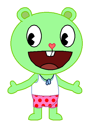 Here's something cute, adorable and funny I did. It's Flippy from HTF/Happy Tree Friends in underwear that males or females actually wear under their clothes. He is wearing Disco Bear's white sleeveless shirt/sleeveless top that is a tank top and tank shirt undershirt and A-shirt and vest and singlet from his workout and exercise and athletic and fitness and sports clothing/clothes in place of his best friend's white tank top from different Happy Tree Friends TV Series Episodes/Shorts along with Splendid's white undershorts and shorts and boxers underwear and underpants and undies with dark red and dark pink hearts on them from the episode: Gems the Breaks. Looks cute for a man bear to wear boxers and undershirt, doesn't it? And also, I forgot to tell you that the undershirt that he's wearing is from the episode: Ipso Fatso.