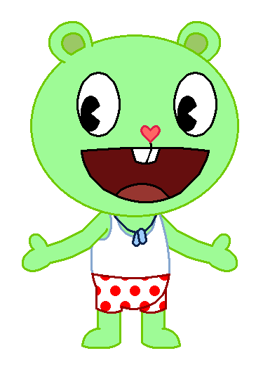Here's something cute, adorable and funny I did. It's Flippy from HTF/Happy Tree Friends in underwear that males or females actually wear under their clothes. He is wearing Disco Bear's white sleeveless shirt/sleeveless top that is a tank top and tank shirt undershirt and A-shirt and vest and singlet from his workout and exercise and athletic and fitness and sports clothing/clothes in place of his best friend's white tank top from different Happy Tree Friends TV Series Episodes/Shorts along with Splendid's white undershorts and shorts and boxers underwear and underpants and undies with dark red and dark pink hearts on them from the episode: Gems the Breaks. Looks cute for a man bear to wear boxers and undershirt, doesn't it? And also, I forgot to tell you that the undershirt that he's wearing is from the episode: Ipso Fatso.