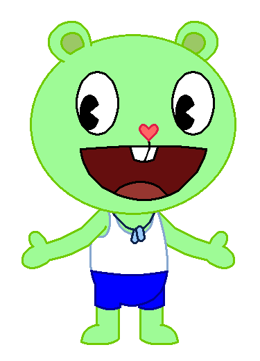 Here's something cute, adorable and funny I did. It's Flippy from HTF/Happy Tree Friends in underwear that males or females actually wear under their clothes. He is wearing Disco Bear's white sleeveless shirt/sleeveless top that is a tank top and tank shirt undershirt and A-shirt and vest and singlet from his workout and exercise and athletic and fitness and sports clothing/clothes in place of his best friend's white tank top from different Happy Tree Friends TV Series Episodes/Shorts along with Splendid's white undershorts and shorts and boxers underwear and underpants and undies with dark red and dark pink hearts on them from the episode: Gems the Breaks. Looks cute for a man bear to wear boxers and undershirt, doesn't it? And also, I forgot to tell you that the undershirt that he's wearing is from the episode: Ipso Fatso.