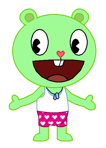 Here's something cute, adorable and funny I did. It's Flippy from HTF/Happy Tree Friends in underwear that males or females actually wear under their clothes. He is wearing Disco Bear's white sleeveless shirt/sleeveless top that is a tank top and tank shirt undershirt and A-shirt and vest and singlet from his workout and exercise and athletic and fitness and sports clothing/clothes in place of his best friend's white tank top from different Happy Tree Friends TV Series Episodes/Shorts along with Splendid's white undershorts and shorts and boxers underwear and underpants and undies with dark red and dark pink hearts on them from the episode: Gems the Breaks. Looks cute for a man bear to wear boxers and undershirt, doesn't it? And also, I forgot to tell you that the undershirt that he's wearing is from the episode: Ipso Fatso.