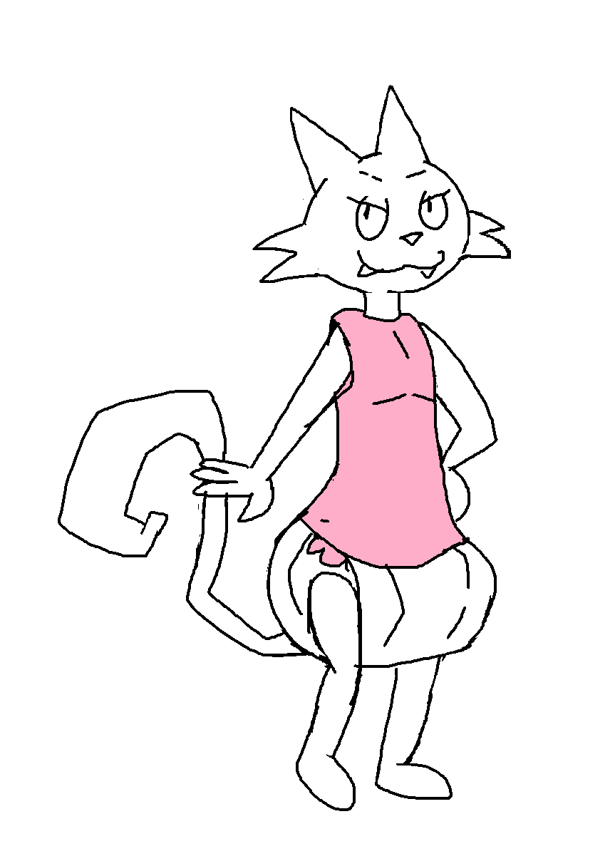 This was long due to being redrawn, and not a phase. Thankfully I've actually decide to bring her back, giving her more... anatomy than before. She has a flat chest. Her tail's kind of 'angular', but rather stylized.
