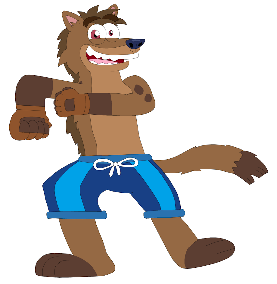 Here's Brash Hyena. He's from the same video game franchise inspired by Crash Bandicoot.