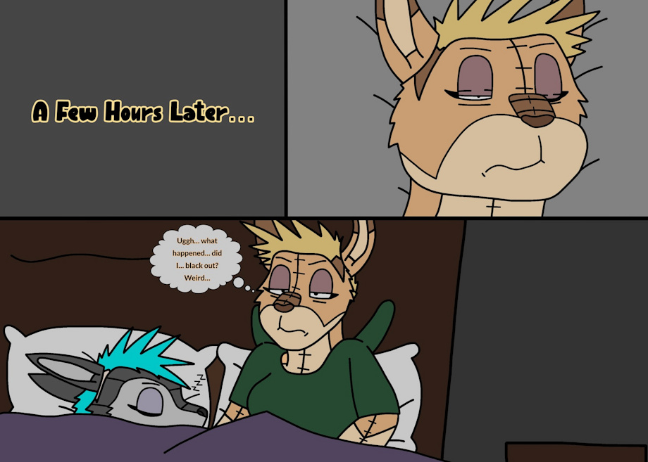 Part 10: Hilde climbs into bed behind Adrian as the wolf is trying to wake her up. She thinks that Adrian is dead but we all know that she isn't. She is just technically unconscious and went inanimate due to how stressed out she was. Hilde then turns the inanimate Adrian plushie onto it's back as Hilde cuddles the kangaroo plushie still teary-eyed due to the predicament she's in as we speak. I hope that Adrian wakes up soon.