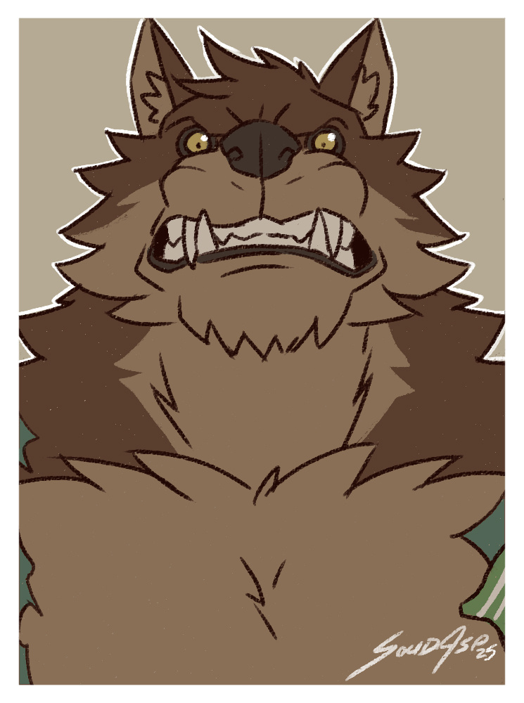 Pheagle stopped in his tracks as the transformation progressed. His ears shifted upwards as they grew fur and molded into points. is chest follow suit as it also grew fur and increased in size, causing small rips in his jacket and his front snaps starting to strain, struggling to hold the jacket shut. Pheagle opened his mouth wide, as his now-muzzle protruded outward and large fangs grew inside his mouth. Was he...turning into a werewolf?!?