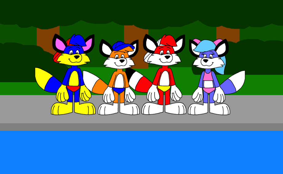 Alex, Billy, Felix and Bluebell in the Rainforest Pool