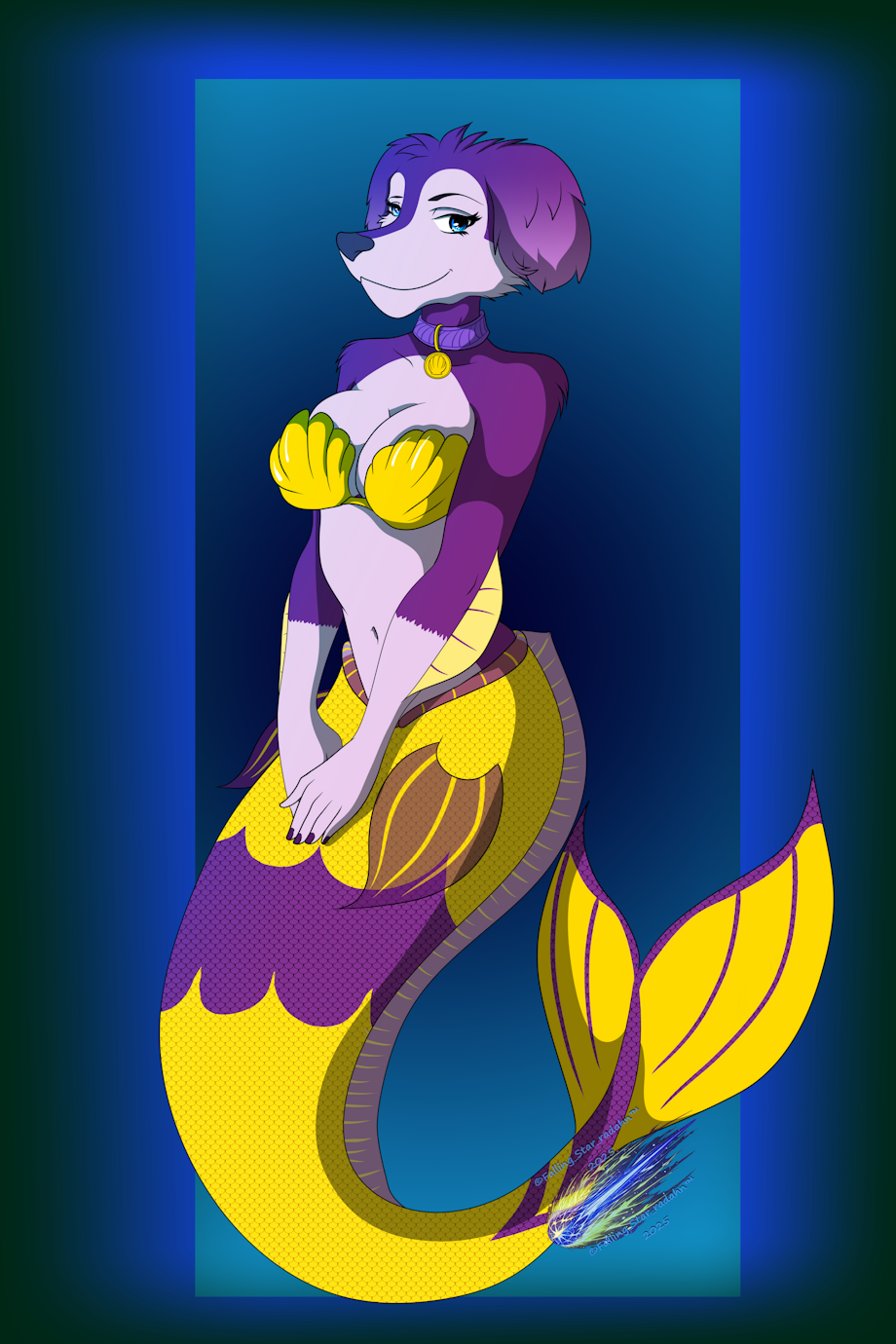 A raffle prize I received from Vlrgo on bluesky who drawn a halfbody of merpup marina posing adorable with a smile on her face while cuddling her fishtail as shes happy to be born as a beautiful Merpup to make everyone fall in love with her all thanks to her fishtail and her attractive appearance with it and most of all her singing and her mommy personality.