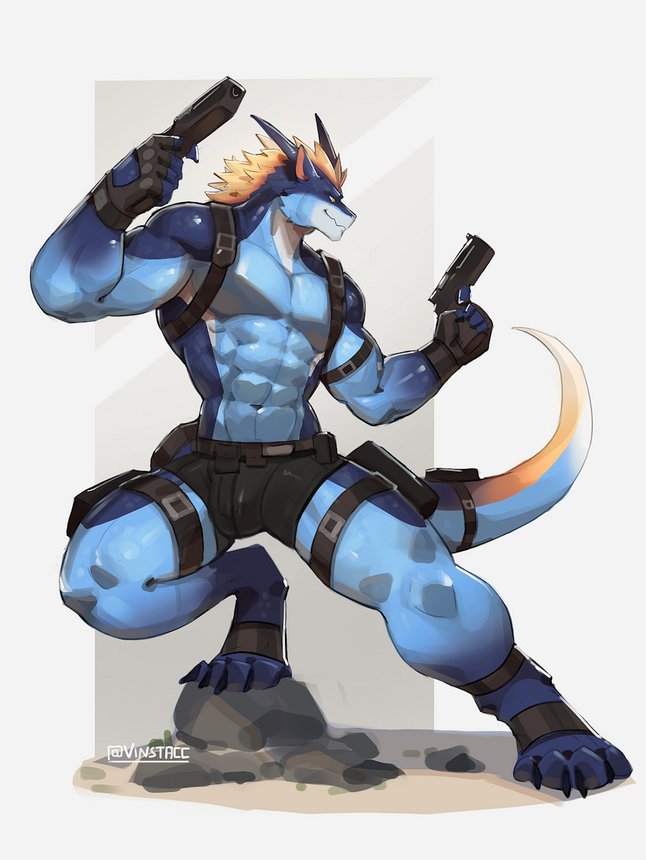 Teryx steps straight out of an action movie, all harness and muscle... every inch of him ready for danger.