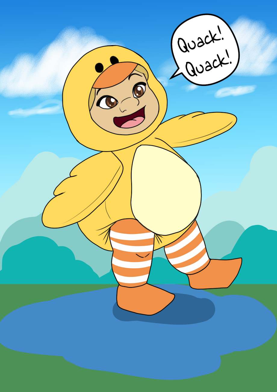 Felt like doing another this evening. So here is Elena doing her best duck impression for the play. I don't think eating an entire loaf of bread was really needed though.