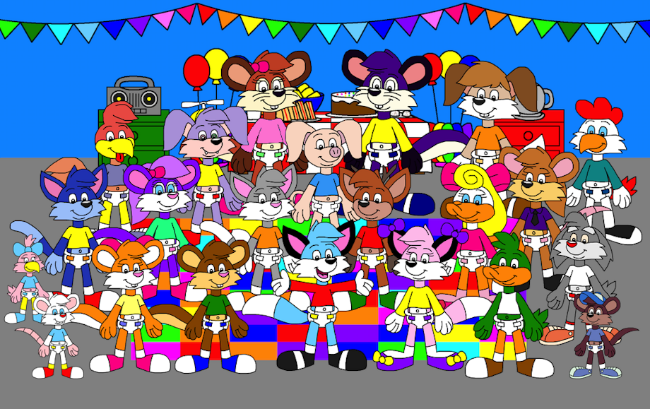 Freddy Fox and All his Friends There are, Felicity, Douglas, Deliah, Crankie, Stephen, Sofia, Miguel, Patrick, Furry, Sally, Lavender, Ruby, Charlie, Russell, Daniel, Rosie, Danny, Bertie, Simon and Abigail at the Party Together.