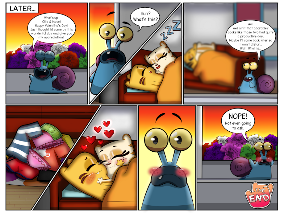 The story ends as Ollie and Moon's snail friend, Stanley comes over to visit them only to realize that he may have come across something that he shouldn't have seen.