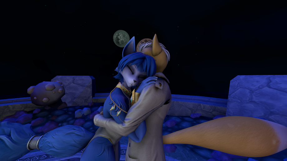 Fox and Krystal are dancing under the moonlight.