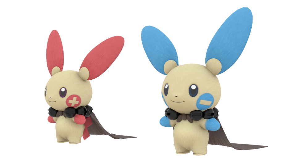 Posit and negat! Super hero plusle and minun! With Megaplus and Bignun as their super hero name!