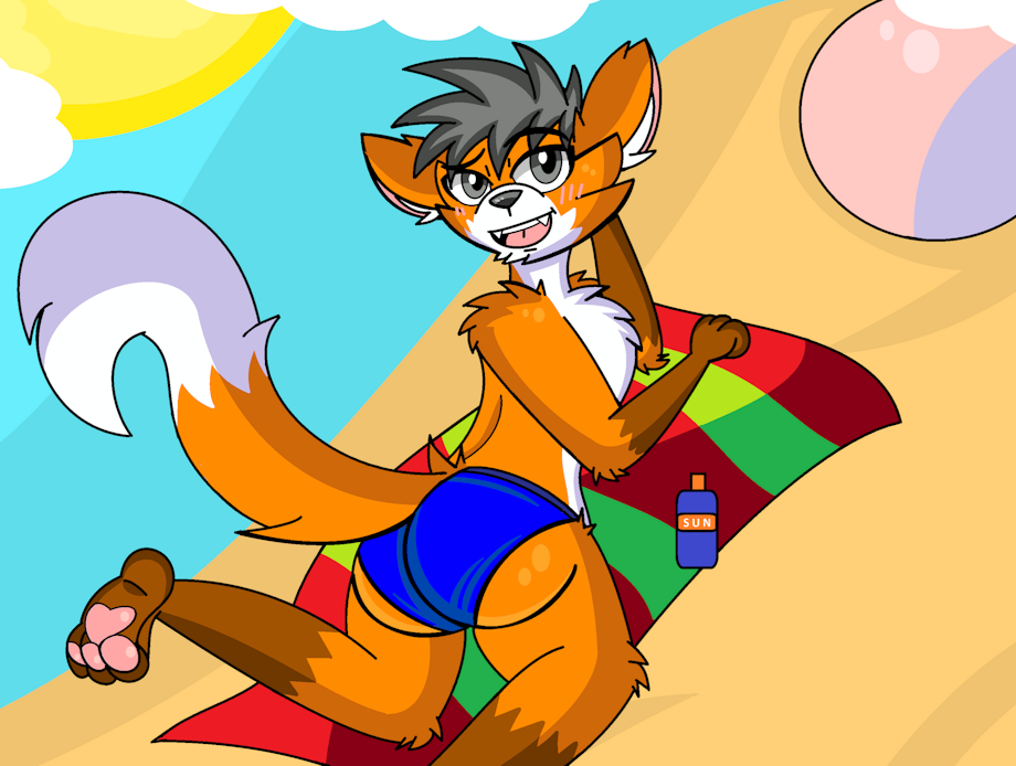 The lovely sweet rush fox wanted to show off his big a- ahem.. Speedo uwu