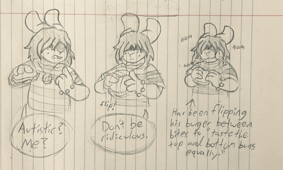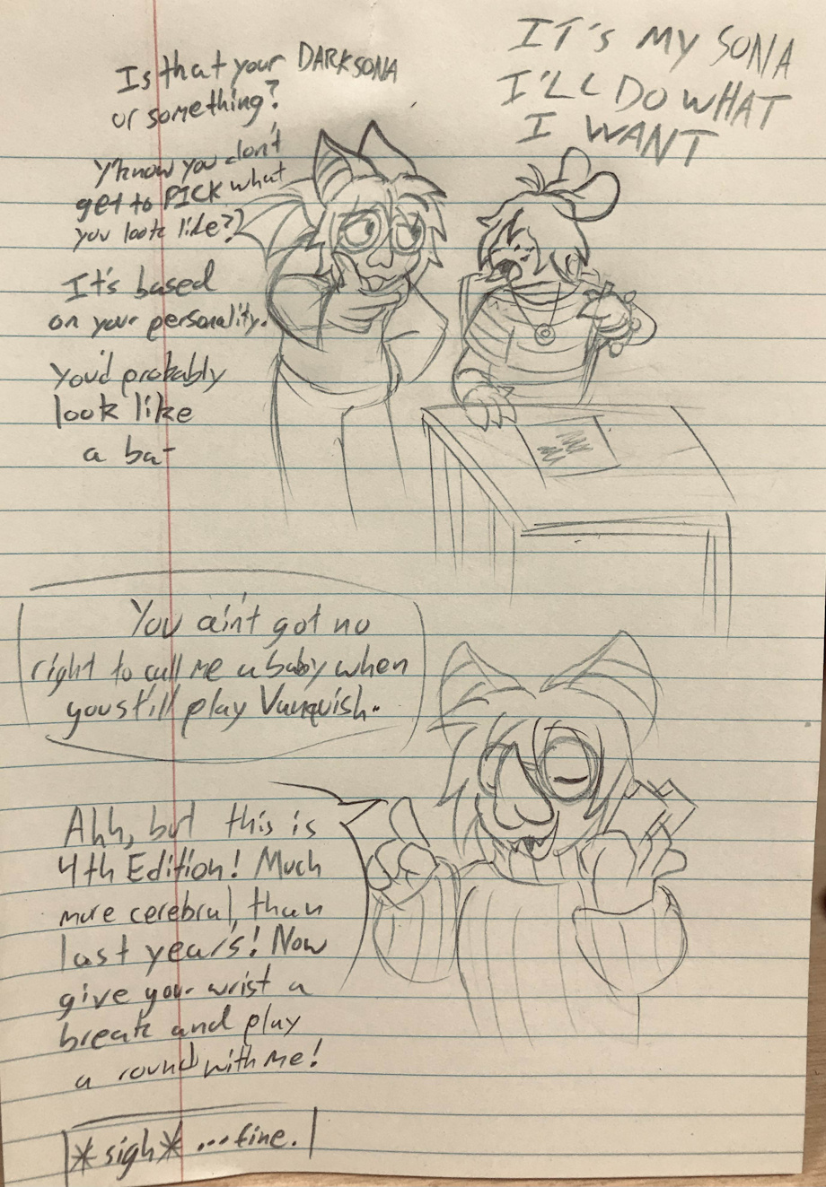 I haven't had much time for full-effort art recently cause my job forced me back into the office :(. I try to scribble at work when I can. Hope these suffice for now.
