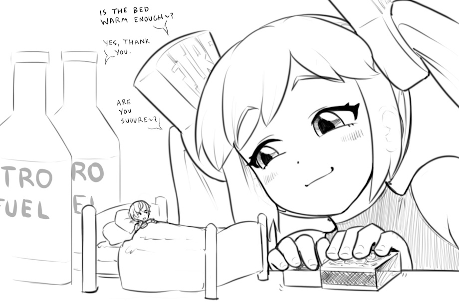 Look, she REALLY wants to help... there will be a personal fireplace right in the most helpful spot!