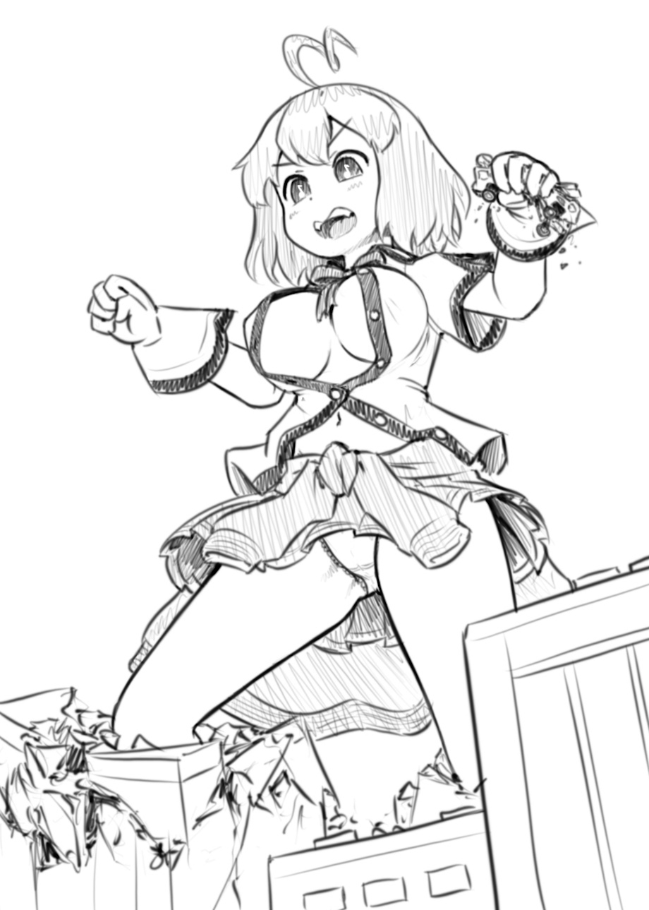 Marvy on a rampage! Neat to see her again, I see she's as light on her clothing as ever, especially depending on the variant! (Those alts are appreciated, by the way! Cute pantsu.) Ready to wreck everything she can, too. Fills the kaiju role perfectly! Stepping right INTO buildings even hahah.