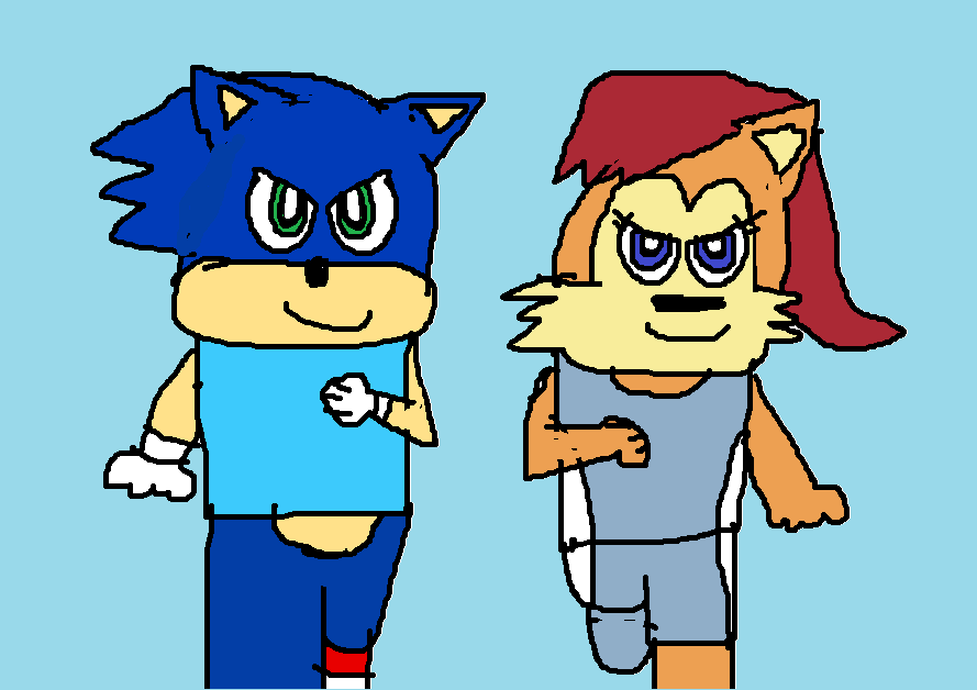 Sonic and Sally, in their track uniforms, doing a foot race like when Sonic was in the Summer Olympics.