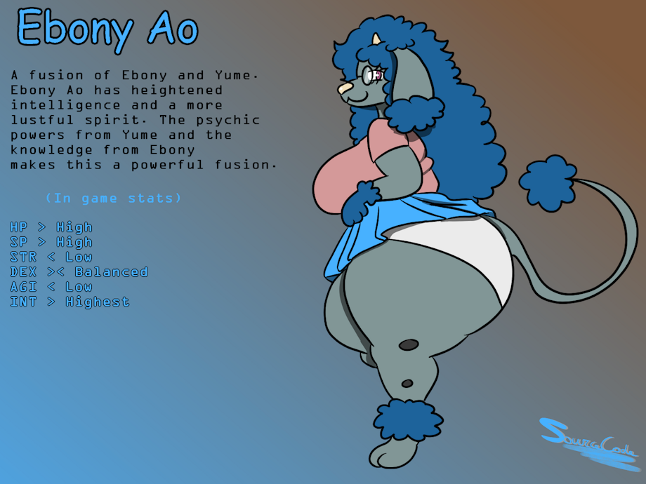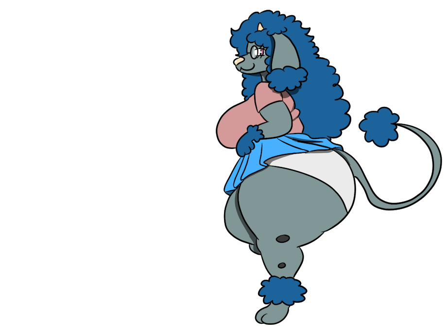 Very big and busty with blue fur and blue curly hair. She also has a few spots on her legs