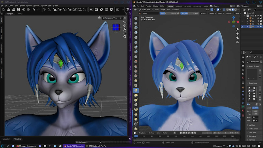 Found these images on the chat with my friend. On the left - Warfaremachine's original Krystal model. On the right - my enhanced and polished morph for Littlefox's Melody A3.
