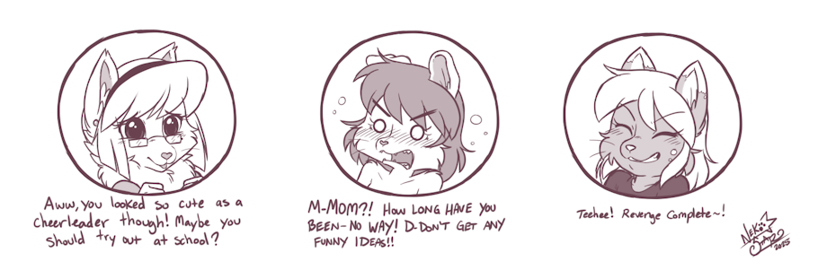 Hee! Hopefully the AC was blasted so that revenge was served nice and cold! And well-deserved too! She does look absolutely adorable, and I actually agree, it might not be a bad idea if she would look into some cheerleader training at school, she seems to fit right in >~_^<