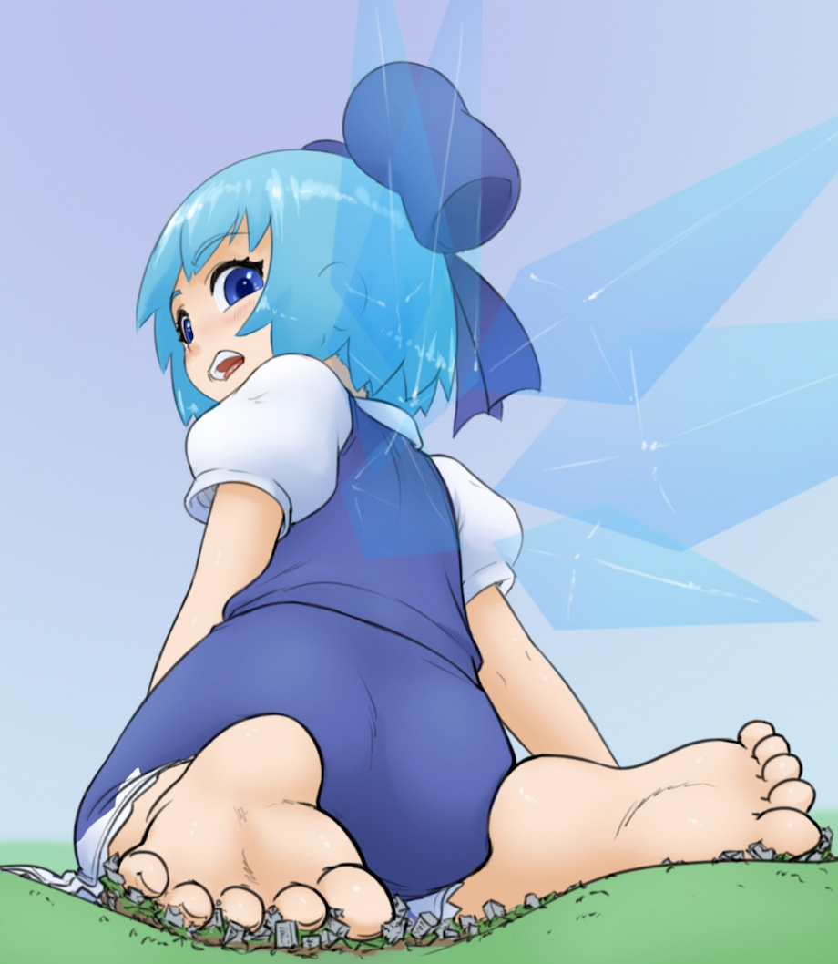 Yeah, her face in particular looks kinda weird, but I do like the toes pressing on top of all those buildings and the from-behind view. Even past the obvious appeals there the wings wound up looking... okay I shouldn't say cool, but I will anyways. It's fun that everyone still remembers Cirno day!