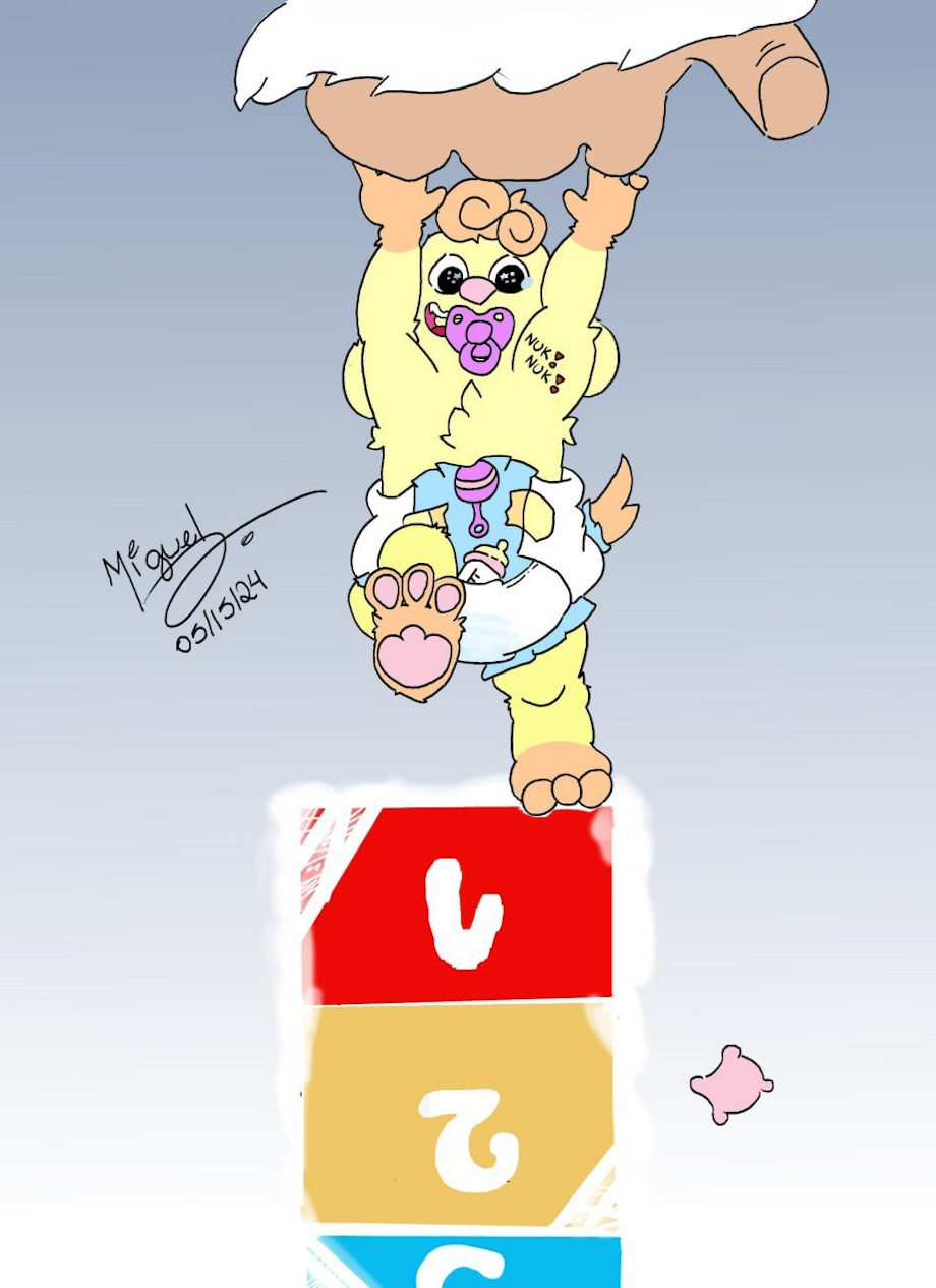 This is an old art that I did that holds a very deep meaning to me, as some of you may know I consider myself to be Christian and I do have a feeling that the big & good guy really helps me with each step. I didn't want to, but I matured the art for a visibly wet diaper (even if I used blue instead of yellow)