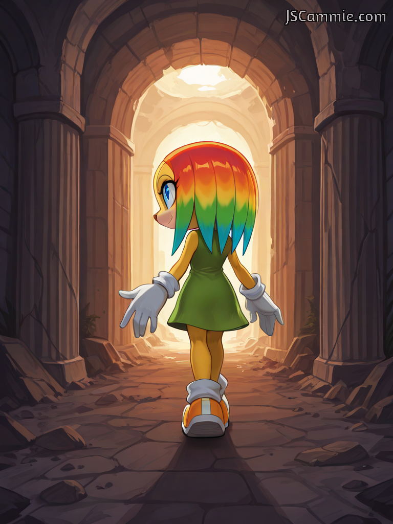 Ch. 8 - Experiment 1 encounters Rainbow the Echidna in the Hidden Ruins underneath Station Square. She names him "Punchy" after he protects her from danger, and she leads him on a tour of her secret home.