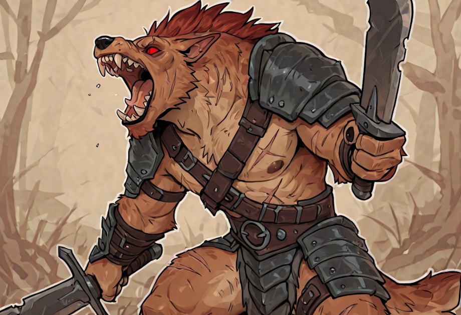 made with civit.ai workflow text to image Model: Nova Kemono XL 4.0 257FB103 Lora: Gnolls (D&D) E1BB008A Prompts: gnoll, male, dnd, medium armor, roaring, red eyes, scars all over body, holding sword, mange, machete, Seed: 2143824288
