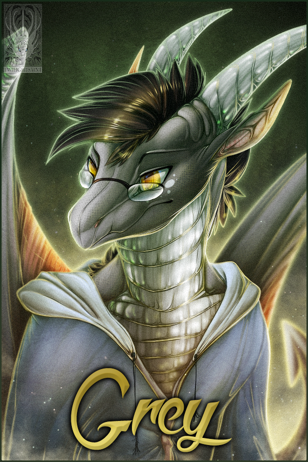 #bust #headshot #head #face #profile #portrait #furry #art #furries #fursona #fandom #twilightsaint #twilight #saint #tws #ts #digital #art #badge #badges #con #convention #dragon #dragons #male #grey #gray #silver #silvery #glasses #hoodie