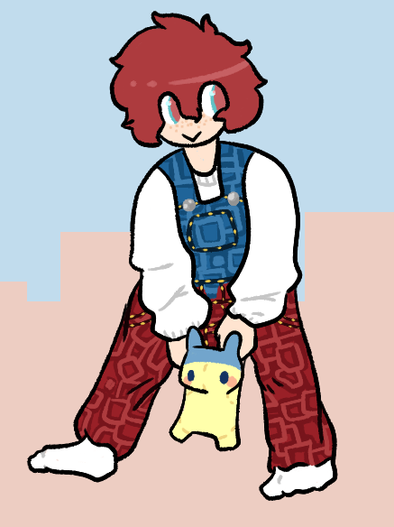 I tried to gijinka-ize my Tamagotchi v4! His/her design was kinda hard, I didn't know what to draw to make it look as genderless as possible uuugh