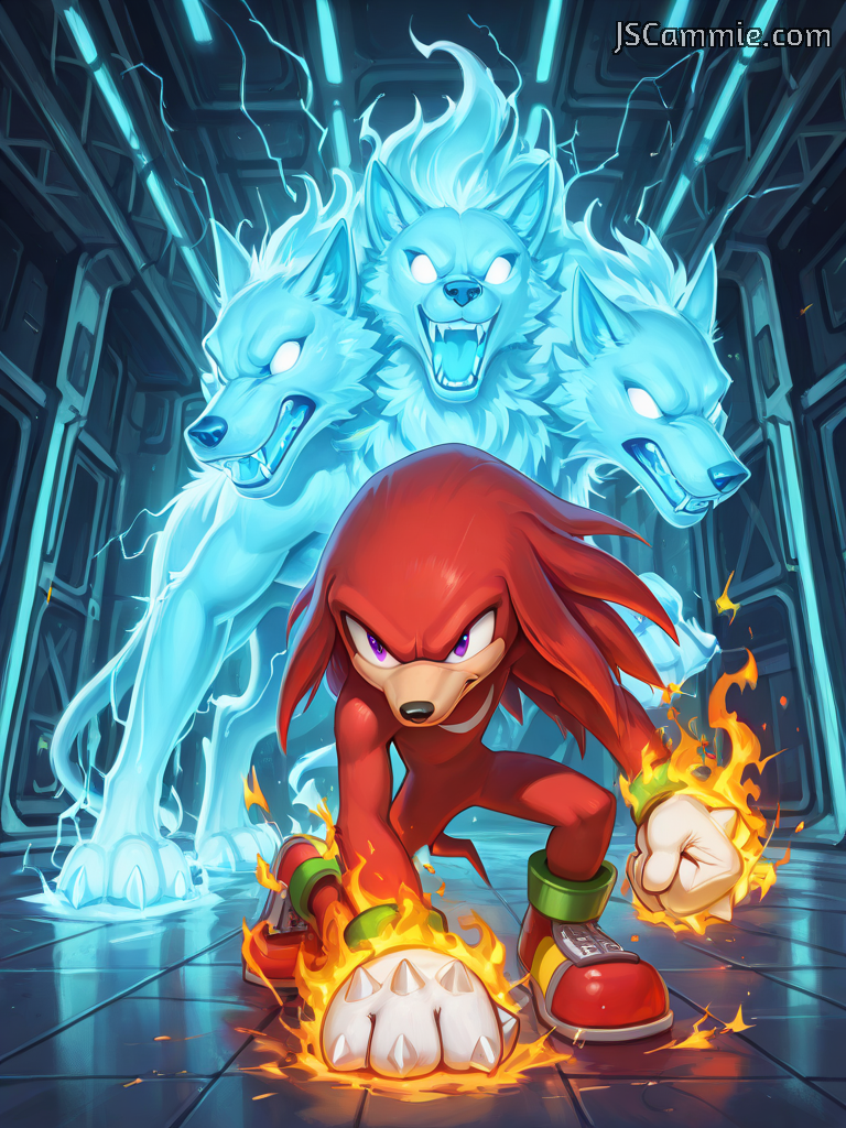 Ch. 14 - Knuckles enters cyberspace to look for info on the Master Emerald, but he faces Eggman's security virus, Firepaw! A fiery battle ensues.