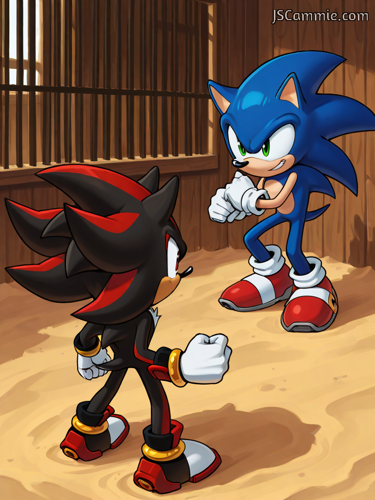 Ch. 20 - Gunner tells Shadow that Sonic is the villain who released Copter from prison. Unsure what to believe, Shadow fights Sonic in Aqua Isle's makeshift prison as Sonic's friends escape.